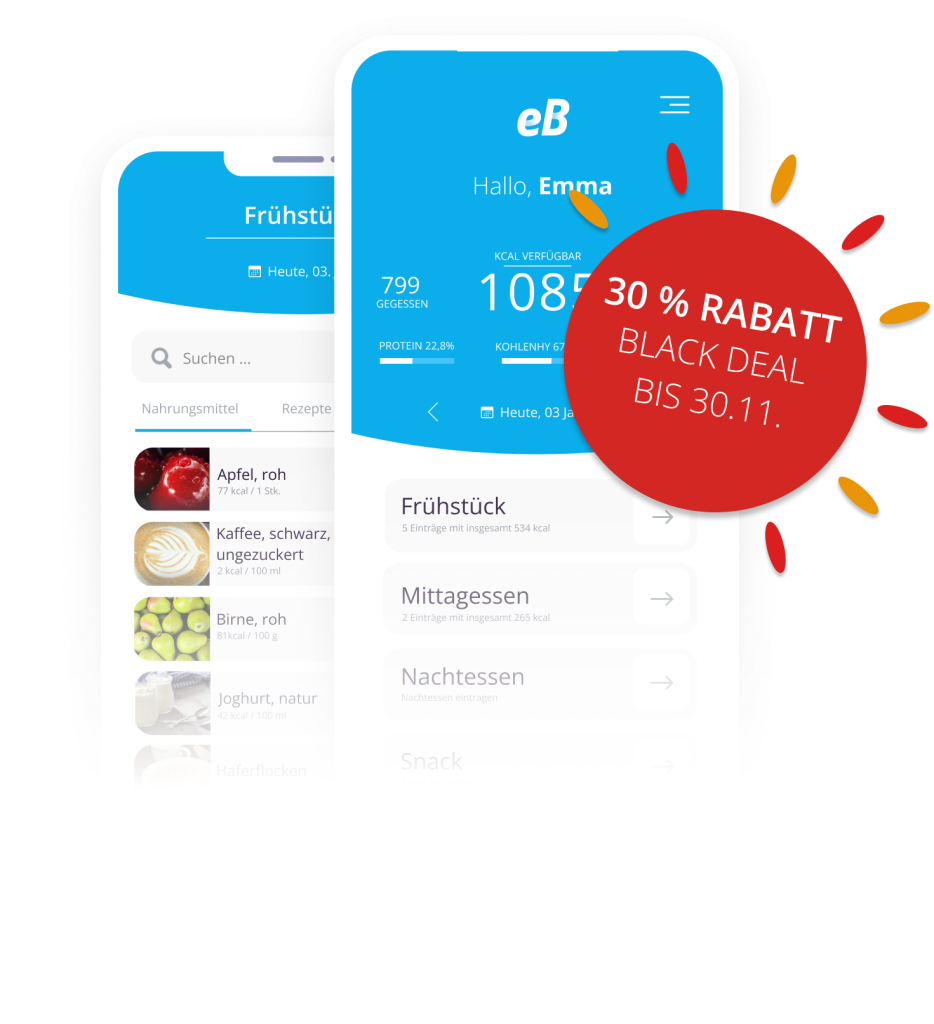 Keine Sorge, unser Programm kommt ohne Verbote aus. Schoggi-Liebhaber können also aufatmen, solange sie ihre Kalorienbilanz im Blick haben. Das eBalance-Prinzip basiert nämlich auf Abnehmen mit kontrolliertem und gesundem Kaloriendefizit. Der Schlüssel dazu liegt in einer genussvollen Ernährungsumstellung – gepaart mit genügend Bewegung.